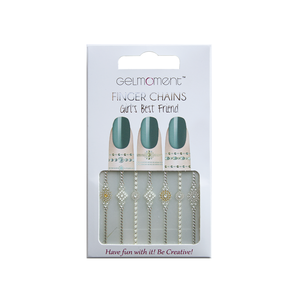 Why end the fun at your nails? Extend your creativity onto your fingers with the help of GelMoment Finger Chains. These self-adhesive "rings" draw the eye toward your beautiful GelMoment manicure. The cute stick-on finger decals can also be used to create a toe ring! Simply apply to the skin around your fingers or toes and enjoy! No glue required.